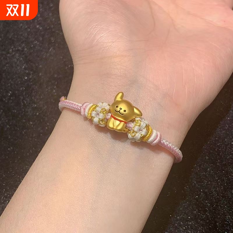 镀金潮流新款线条小狗手链甜美编织手绳转运情侣礼物送女生可爱款