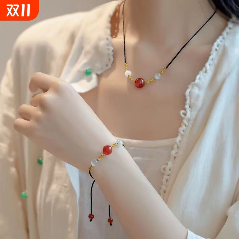 相思豆红玛瑙项链转运珠手工手链情侣编织幸运红豆手绳锁骨链套装