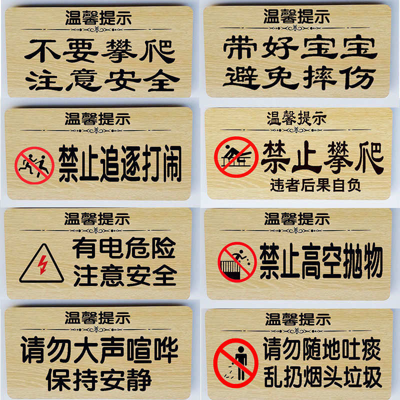 定制酒店商场提醒顾客带好宝避免摔伤禁止攀爬注意安全倚靠标识牌