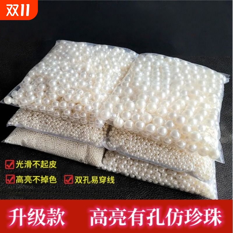 abs仿珍珠散珠diy材料直孔装饰仿真米白珠子串珠饰品配件手工珍