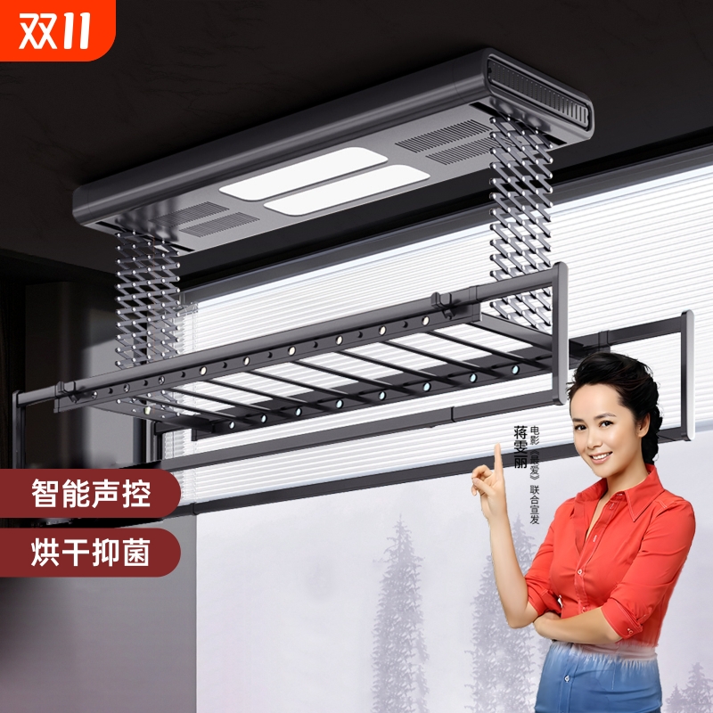 电动双灯晾衣架遥控语音智能家居阳台烘干排升降晒衣架固定式承重