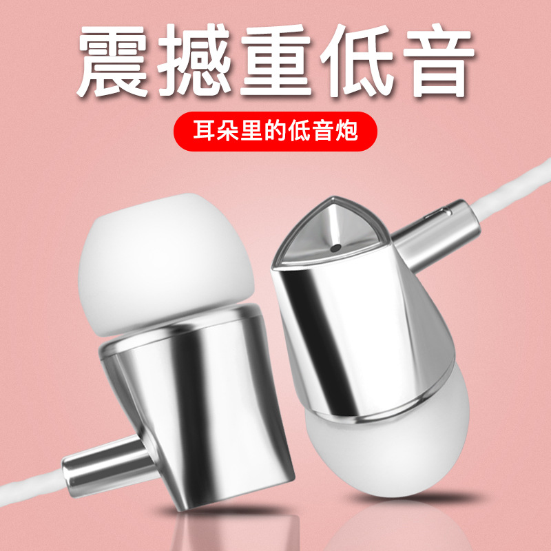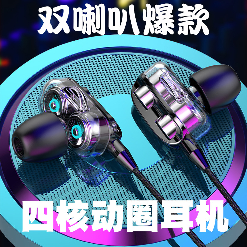 爆款四核动圈双喇叭耳机 入耳式重低音带麦线控调音手机耳机
