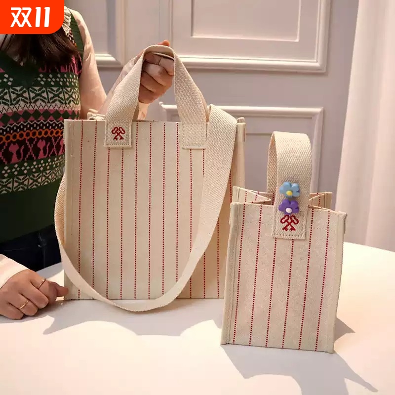 韩国小众ins格子帆布包手提包迷你敞口手提包大容量购物袋单肩包