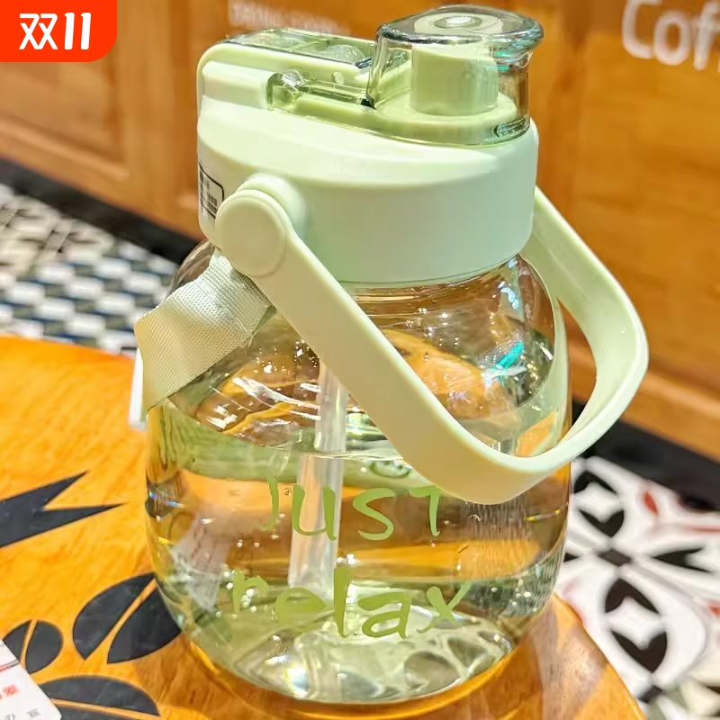简约带吸管双饮口大肚随手杯