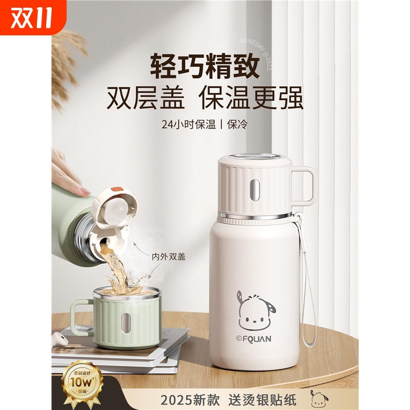 保温杯女生士2025新款高颜值茶盖大容量316水杯子便携直饮口白