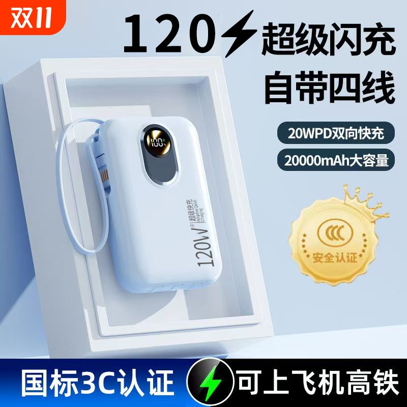 充电宝【新国标3C认证】超大容量超级快充新款20000毫安自带线