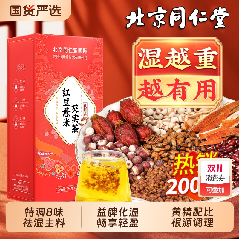 北京同仁堂赤小红豆薏米芡实茶非祛排湿气去除湿寒气毒养生茶正品