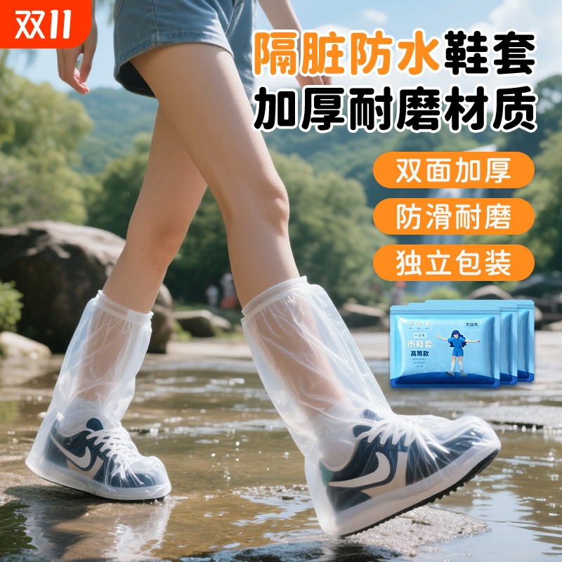 一次性雨鞋套加厚防水长高筒耐磨户外防滑下雨天塑料脚套防雨