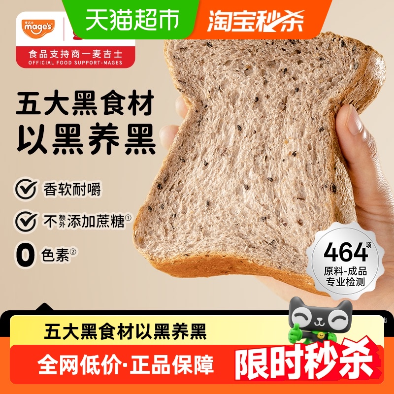 【早餐推荐】麦吉士无蔗糖五黑奇亚籽吐司黑全麦面包整箱营养早餐