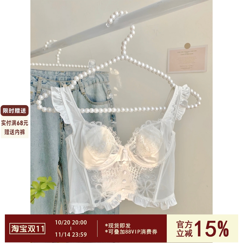 法式性感鱼骨蕾丝胸衣内衣女软钢圈大胸显小可外穿纯欲风文胸套装