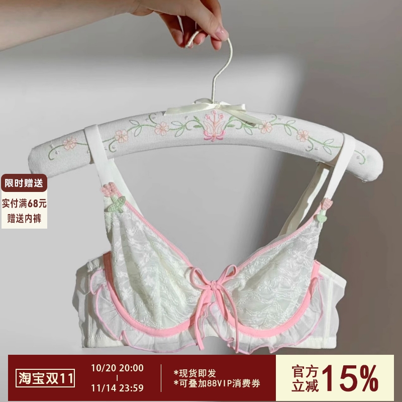 日系超薄款兔耳朵内衣女大胸显小软钢圈性感纯欲风上托文胸罩套装