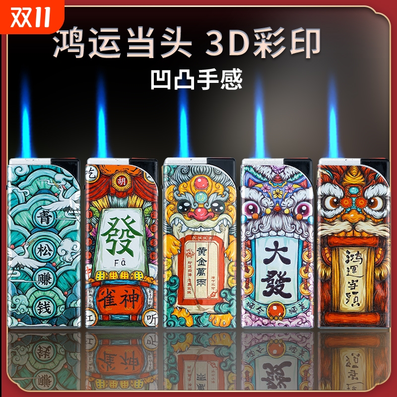 金属防风直冲打火机可充气一次性国风潮流耐用高颜值商超批发火机