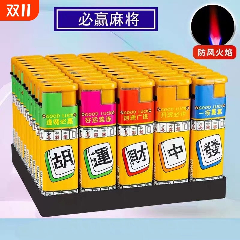 国潮防风耐用一次性打火机贴画个人家用批发整盒50支火机好运防爆