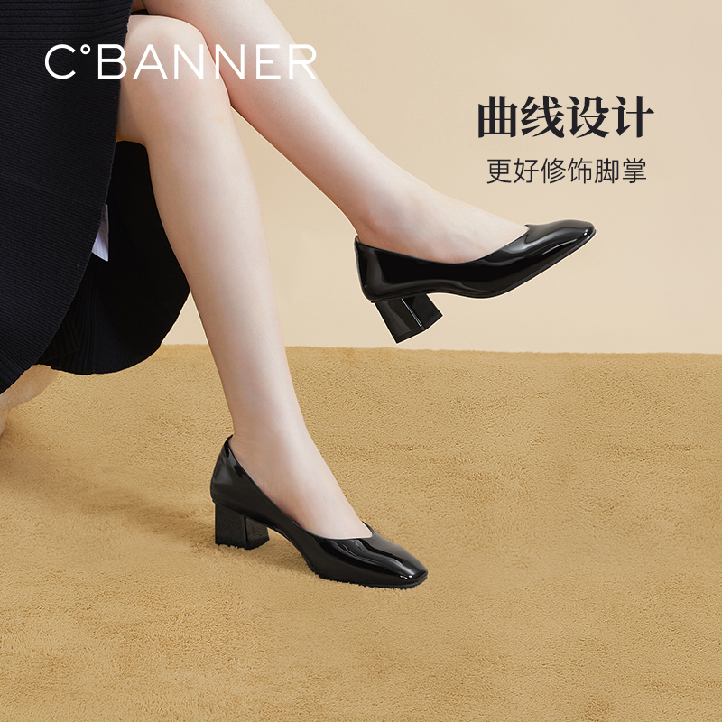 大东深口鞋女鞋2025秋季新款简约风方跟低跟系带圆头乐福鞋Q07