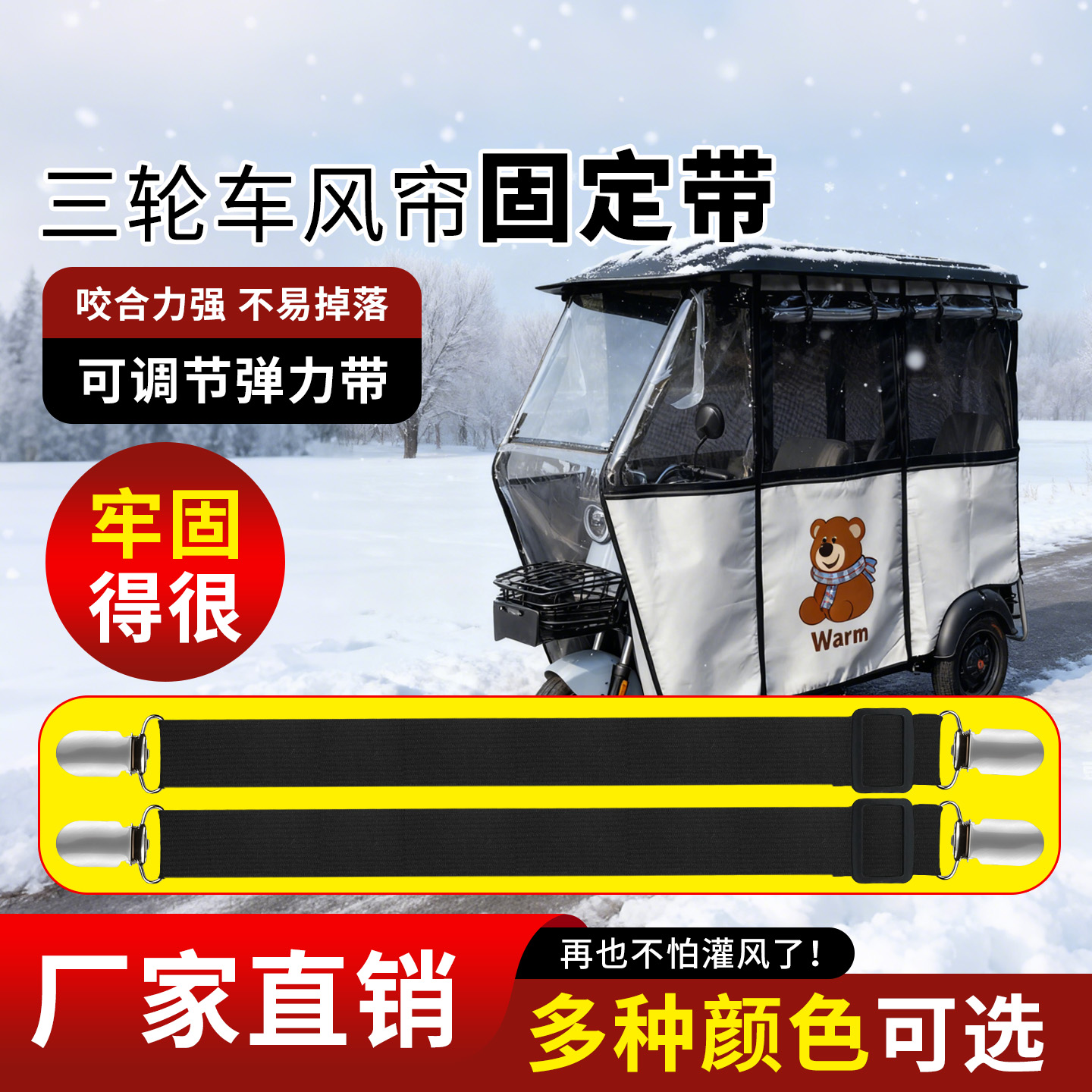 米乐奇电动三轮车室内防漏风绑带
