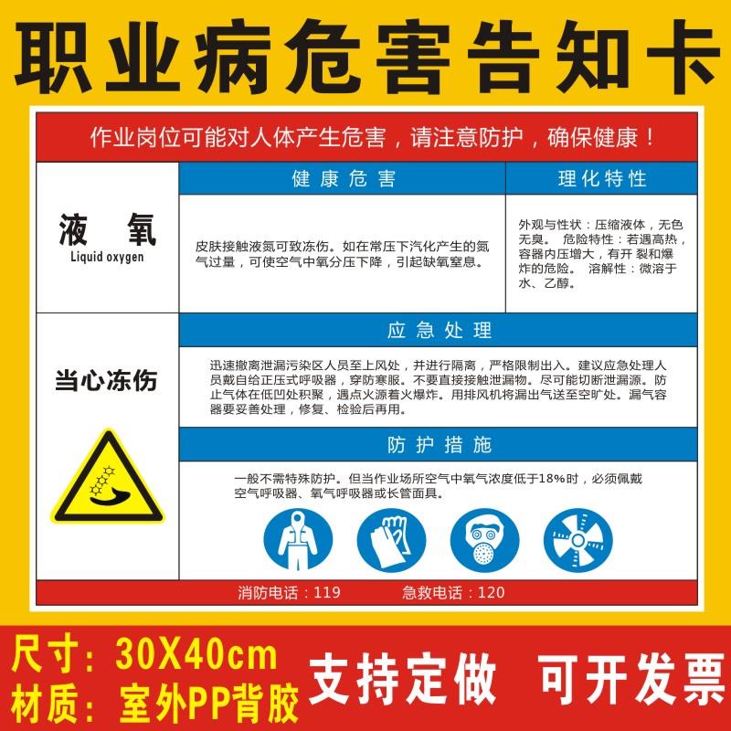 液氧职业病危害告知卡安全风险生产周知卡提示牌标志标识牌液态氧职业