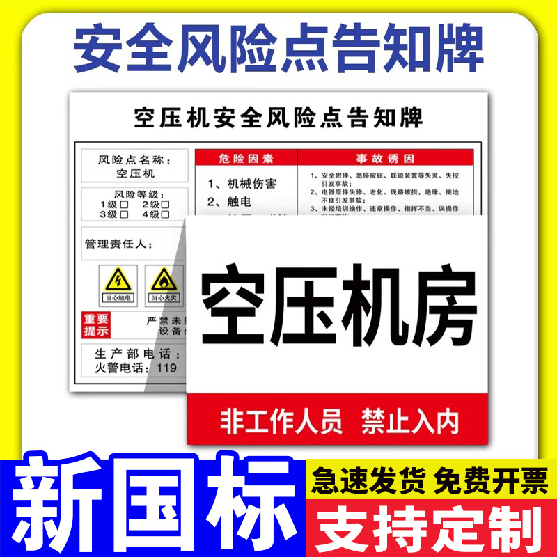 冲床告知卡空压机配电房告知警示牌风险岗位生产仓库机械设备风险辨识