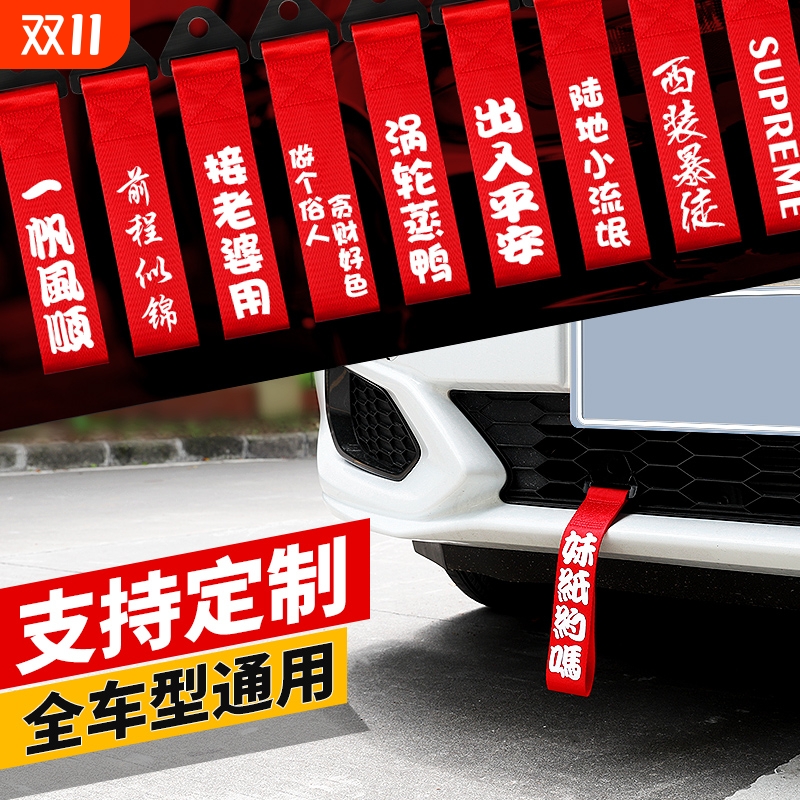汽车拖车绳改装保险钩前杠牵引绳拖车带车头挂件出入平安飘带装饰