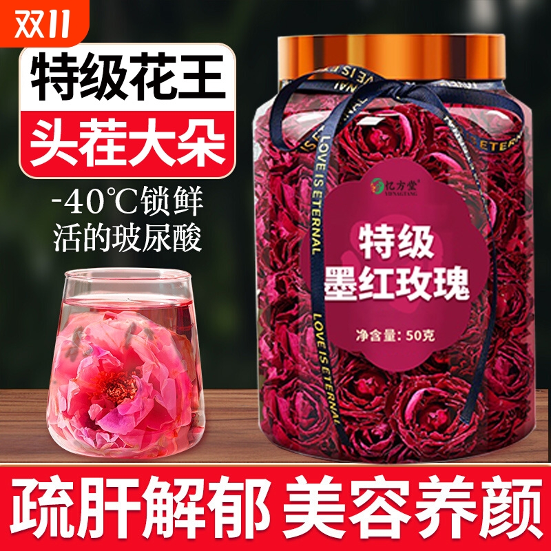 云南墨红玫瑰花茶冻干花重瓣疏肝解郁官方旗舰店正品大朵食用罐装