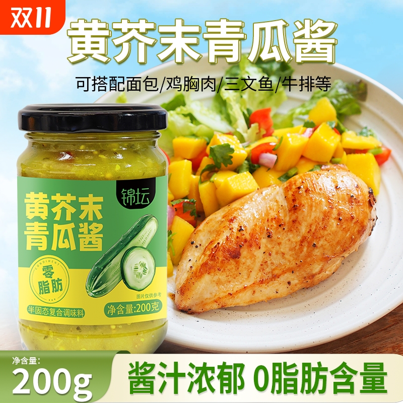 黄芥末青瓜酱蔬菜沙拉三明治面包伴侣汉堡酱黄瓜0脂肪黄瓜酱200g