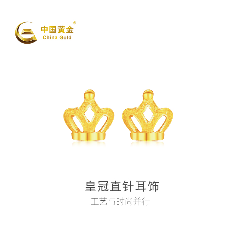 【中国黄金官方店】足金皇冠直针耳饰时尚简约气质金耳环蛇年新品