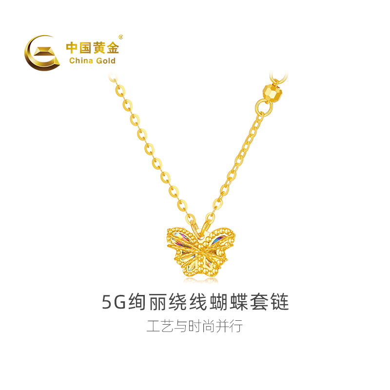 【中国黄金官方店】足金5G绚丽绕线蝴蝶套链时尚简约首饰气质百搭