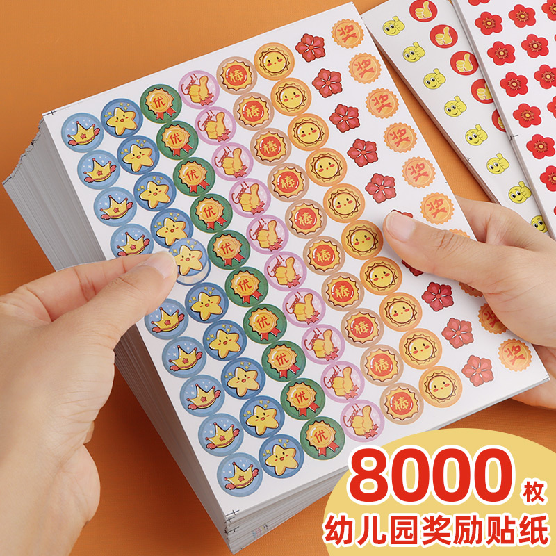 儿童奖励贴纸幼儿园宝宝卡通小图案贴画可爱圆形无毒自粘家长老师鼓励