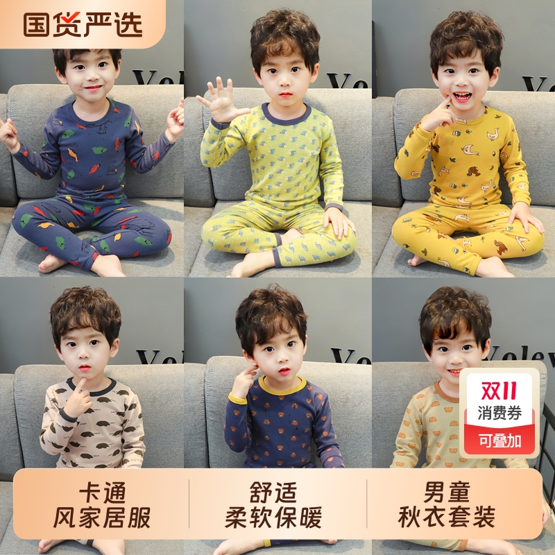 秋冬男童棉卡通风家居服内衣套装