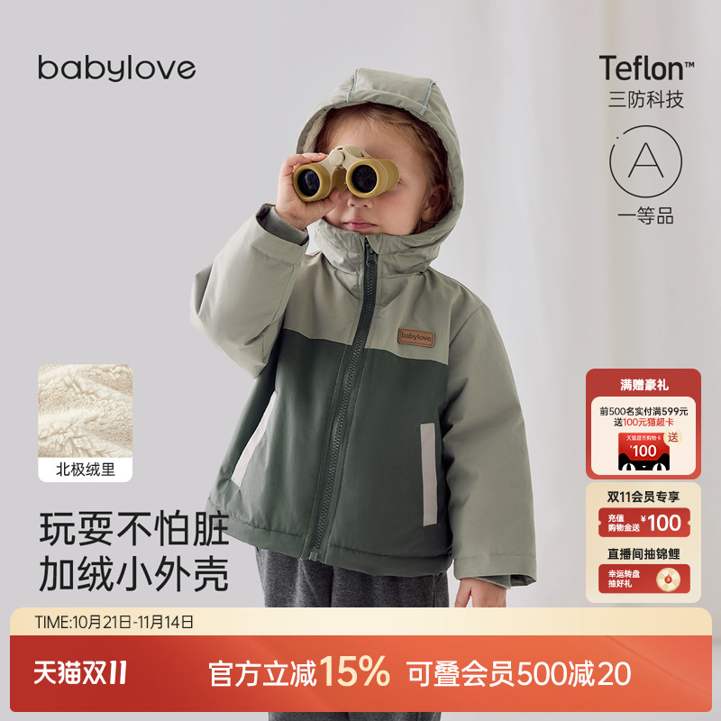 babylove宝宝加绒机能外套秋冬加厚保暖防风户外夹克儿童连帽