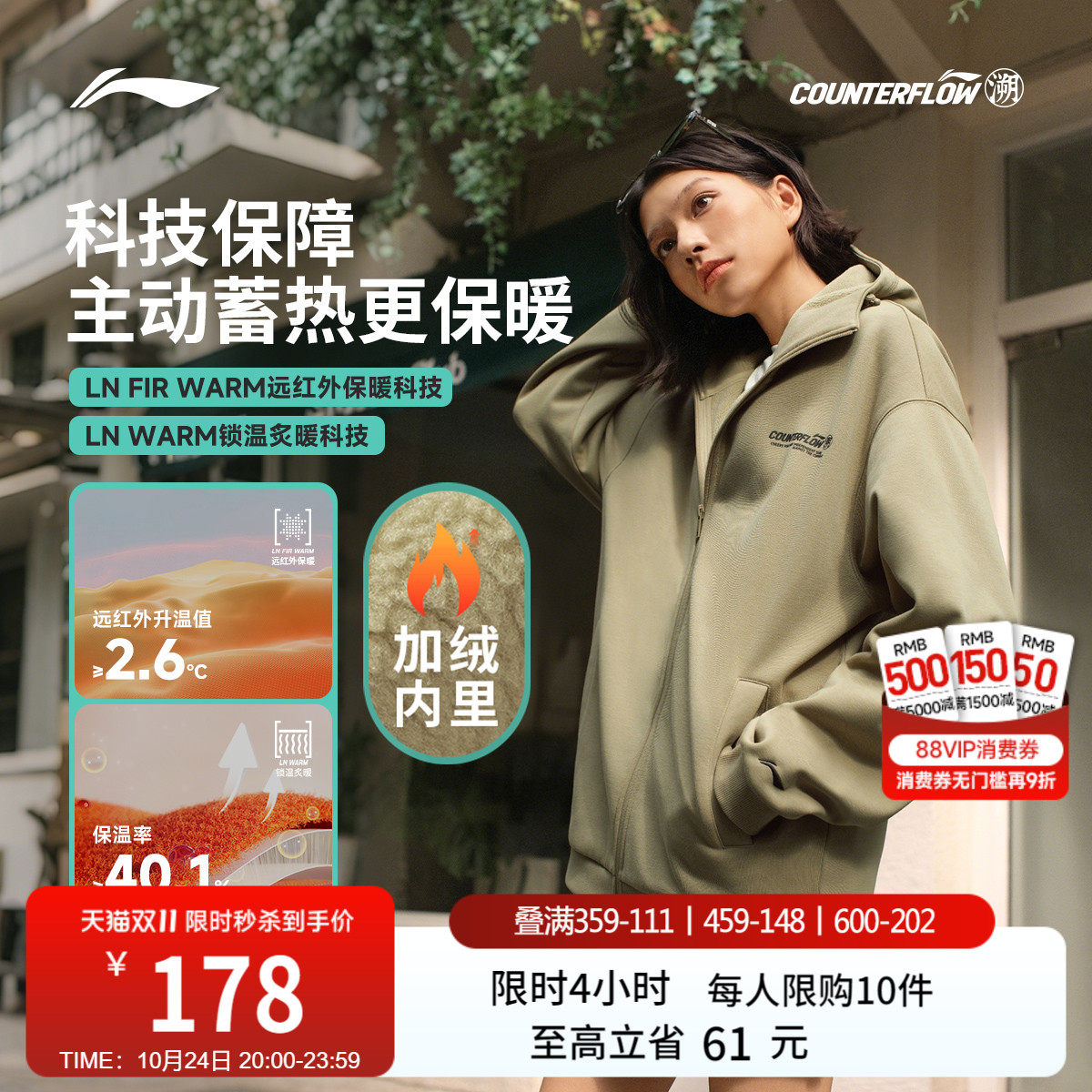 李宁户外CF溯连帽开衫无帽卫衣