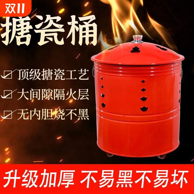 搪瓷烧金桶家用红色烧元宝桶烧纸桶化宝桶大号聚宝盆烧不黑