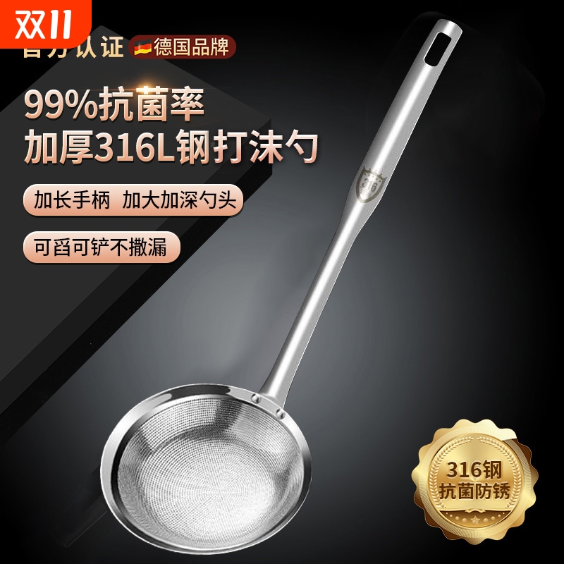商用不锈钢漏勺超密过滤网厨房洗网油隔去油脂面粉筛宽边油格耐用
