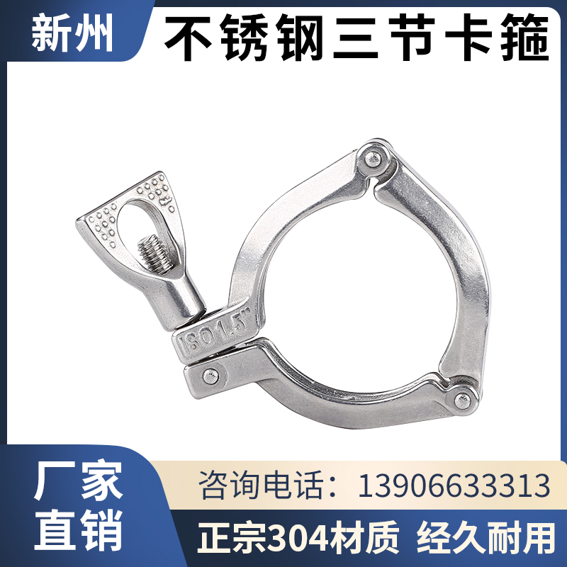 304不锈钢快装三节卡箍卫生级法兰卡套式卡扣固定抱箍紧固件卡盘