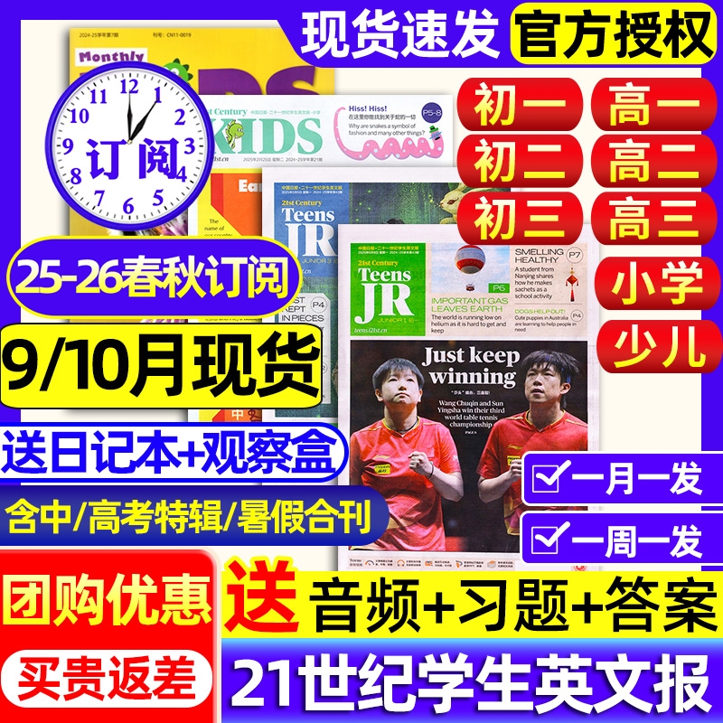 21世纪英文报小学版/初中版/高中版杂志2025-2026年春秋