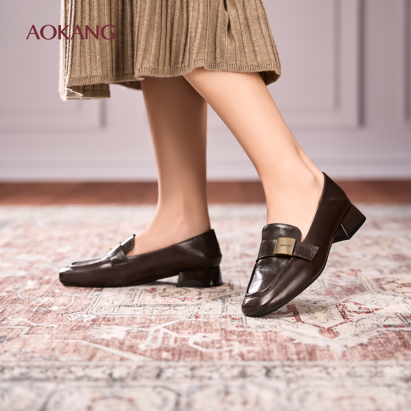 奥康 女鞋2025秋季乐福鞋真皮英伦风精致通勤单鞋中跟门店发货