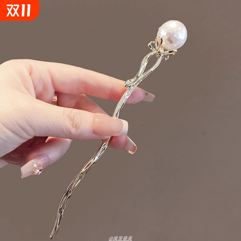 精致珍珠发簪简约新中式高档发饰马面裙配饰后脑勺盘发神器发钗女