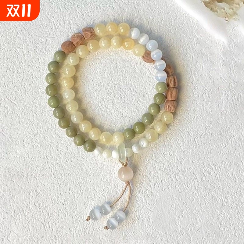 「青云古韵」新中式米黄玉白蝶贝串珠手链精致百搭猫眼双层手饰女