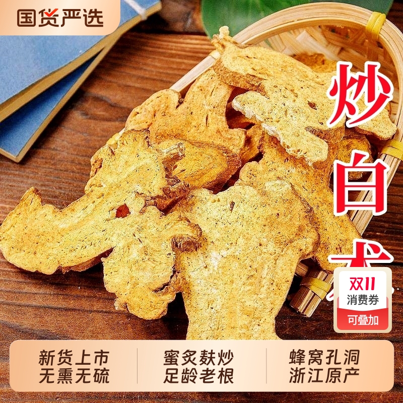 炒白术中药材蜜麸炒白术炙白术正品官方旗舰店土炒白术片焦白术干