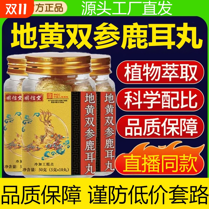 地黄双参鹿耳丸官方旗舰店正品真材实料草本直播同款独立包装健康