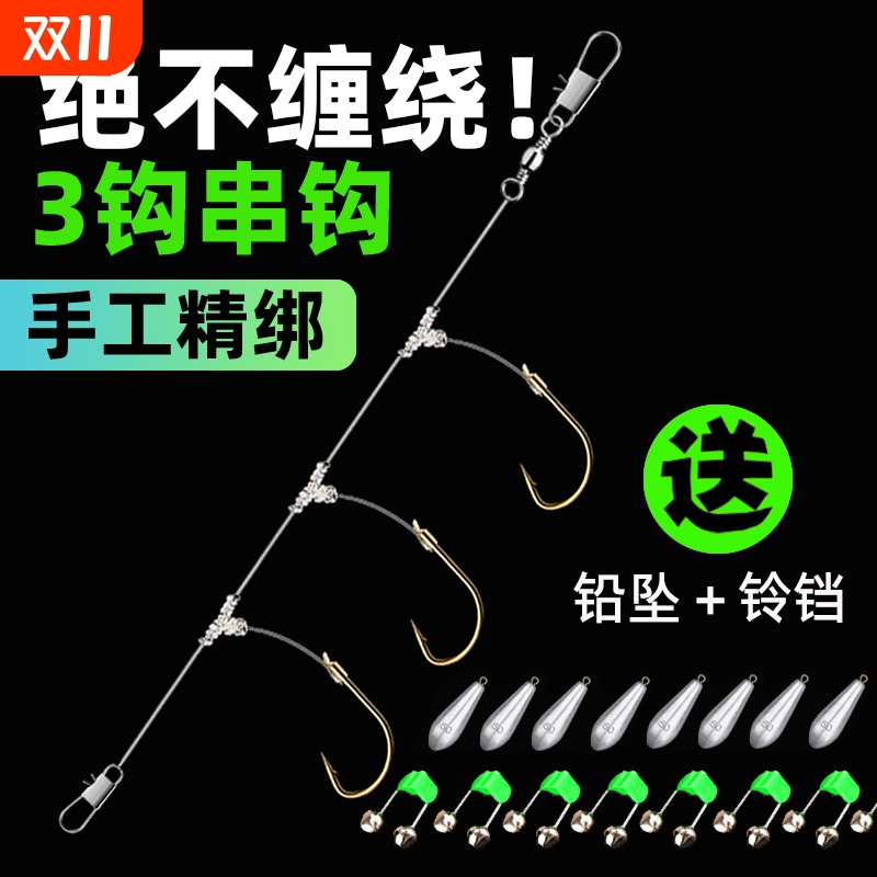 串钩钓组三钩丸世袖钩防缠绕串钩
