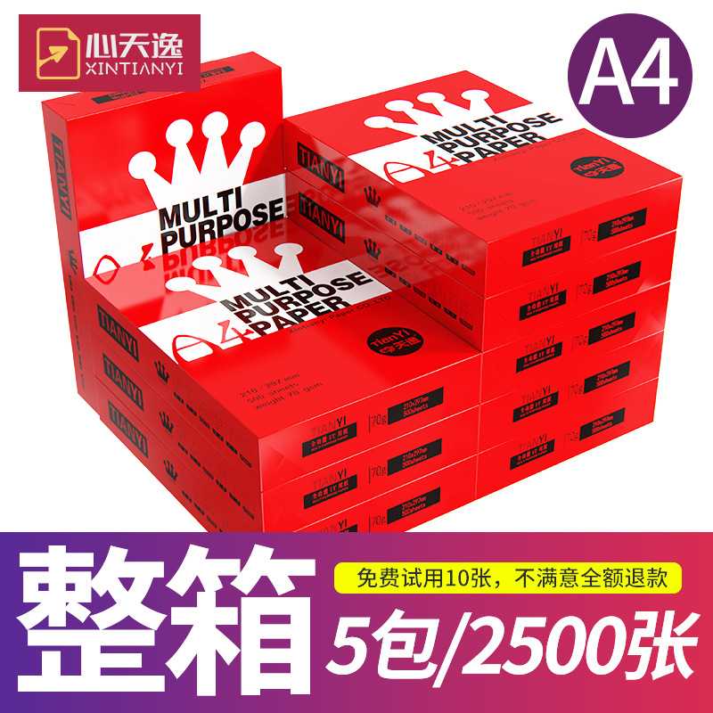 心天逸a4纸70g复印纸办公用纸A4打印纸500张白纸草稿纸5包