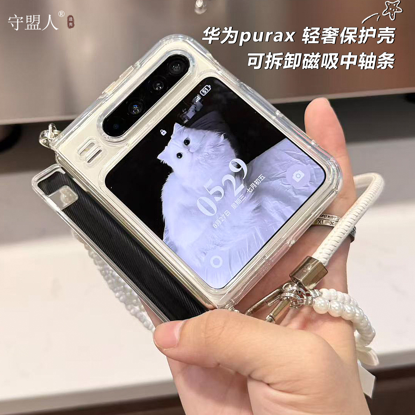 新品壳膜一体适用于华为purax手机壳全包支架波点猫折叠屏中轴保