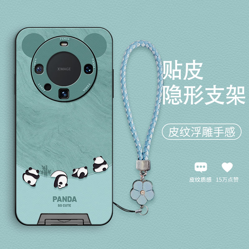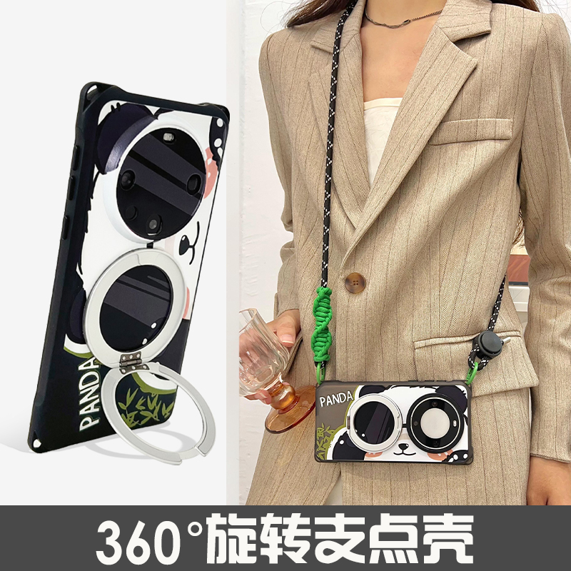 高级感羽纱黑白猫咪苹果17promax手机壳带挂绳手腕适用于华为