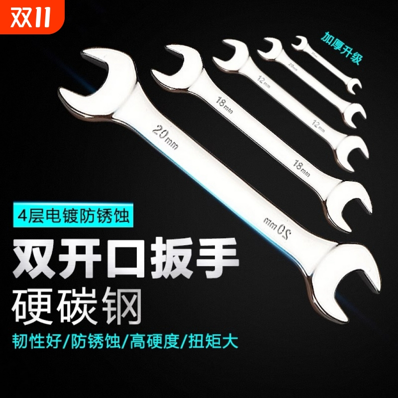 开口扳手工具套装两用呆头小扳手双头呆扳手镜面五金扳手工具套装