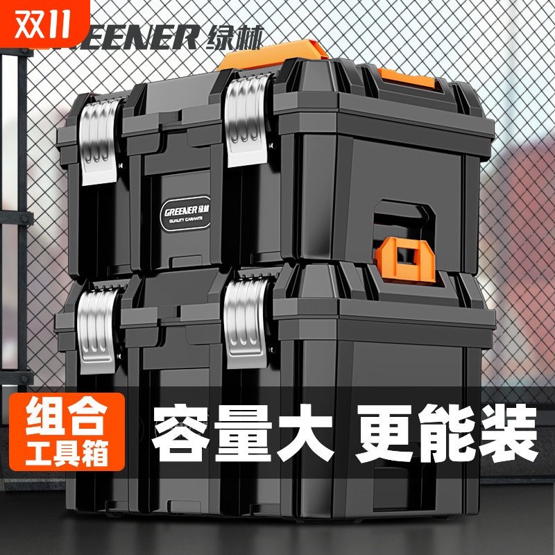 绿林多功能电动五金工具收纳箱堆叠木工工具箱工业级特大号大容量