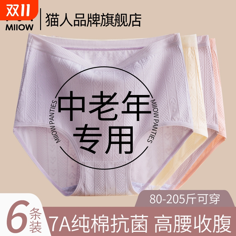北熊人纯棉高腰内裤女抗菌收腹提臀暖宫大码胖mm三角内裤新款薄款