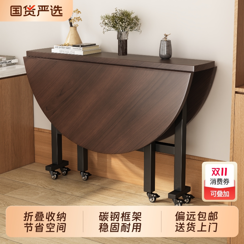 R*可折叠圆桌餐桌家用方桌简约老式靠边站饭桌折叠桌6人8人吃饭桌