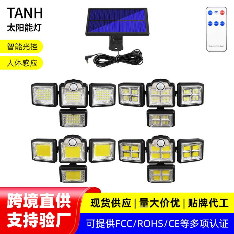 太阳能户外壁灯 LED4头旋转人体感应庭院灯 带遥控院子车库小路