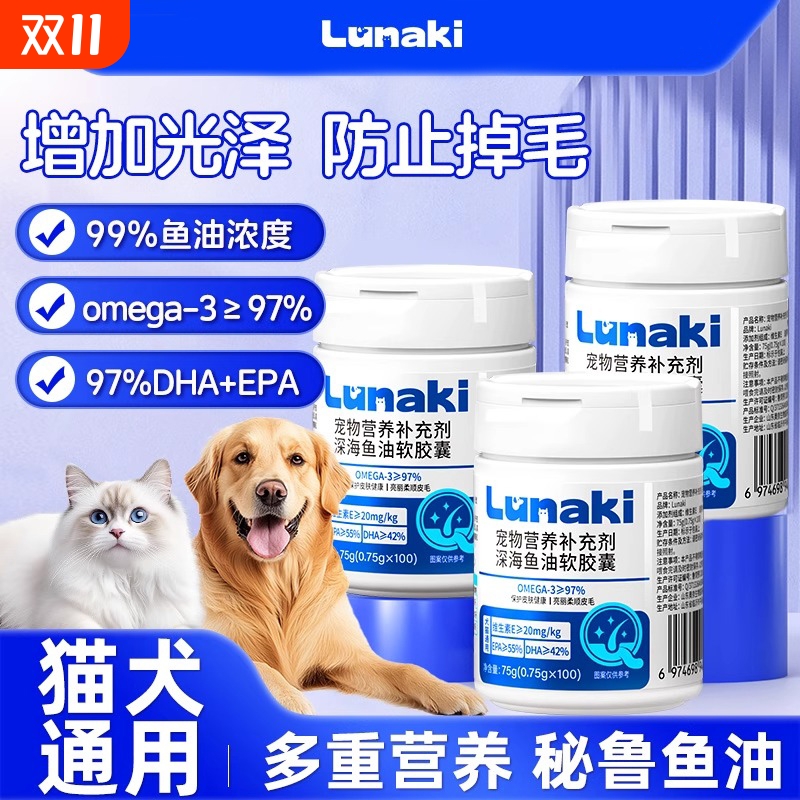 宠物深海鱼油猫狗狗专用小猫咪预防掉毛吃什么猫犬正品官方旗舰店