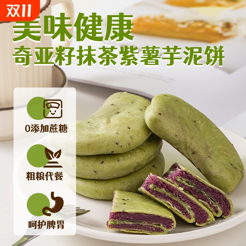 奇亚籽抹茶紫薯芋泥饼干健康零食品粗粮代餐网红面包糕点休闲小吃